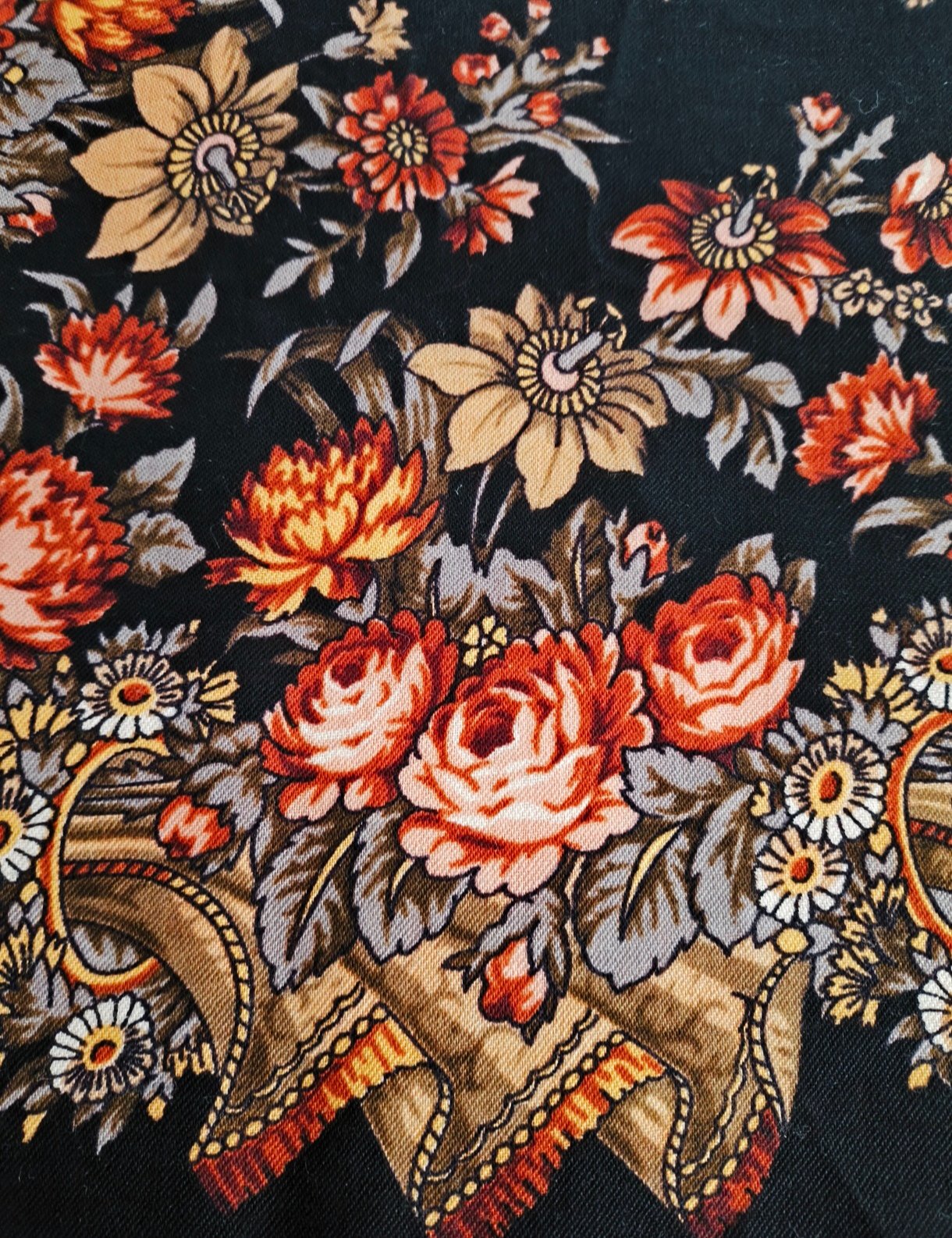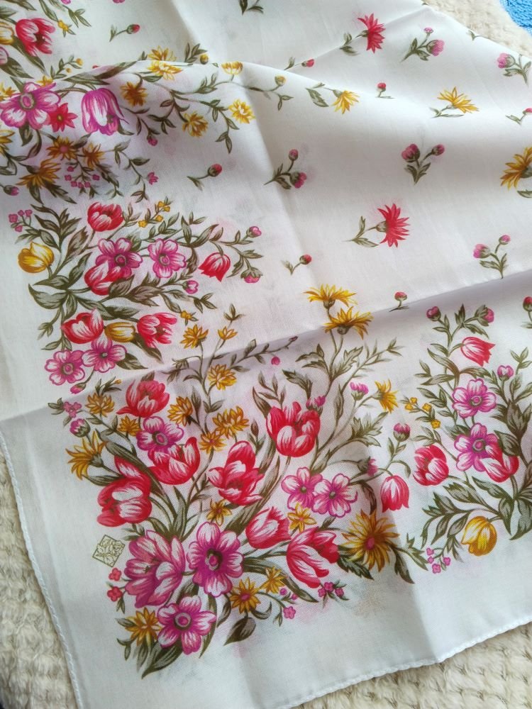 Розы, васильки, колокольчики, маки, анютины глазки, ландыши, незабудки и даже цветущая земляника. А кто еще какие цветы на этом платке опознал?20250509_170647.jpg