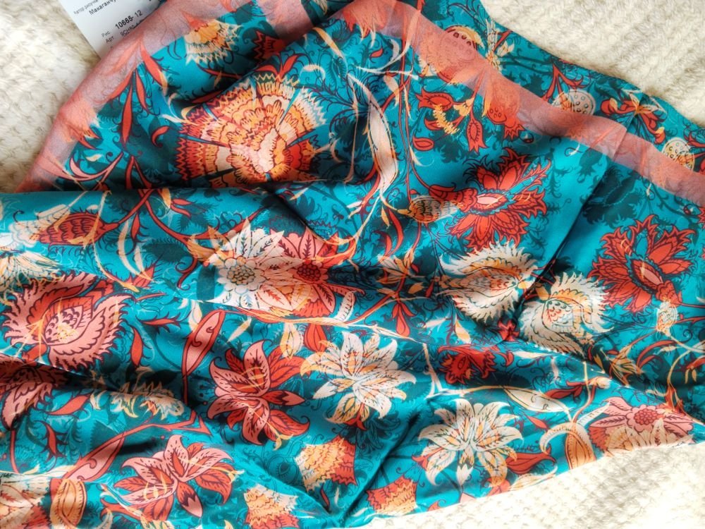 Розы, васильки, колокольчики, маки, анютины глазки, ландыши, незабудки и даже цветущая земляника. А кто еще какие цветы на этом платке опознал?20250509_170647.jpg