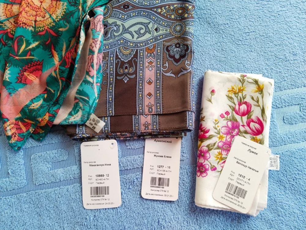 Я тоже этот Лужок купила, уж больно по сердцу пришёлся, даже если не буду носить - полюбуюсь! И еще 2 батиста 115х115. На сайте купила в последний день, а они вот на магазины скидки сделали. Посылка с 29 апреля вчера только двинулась в путь. У нас конечно холодно пока, шали в ходу, но всеж в магазине могла уже купить если б знала