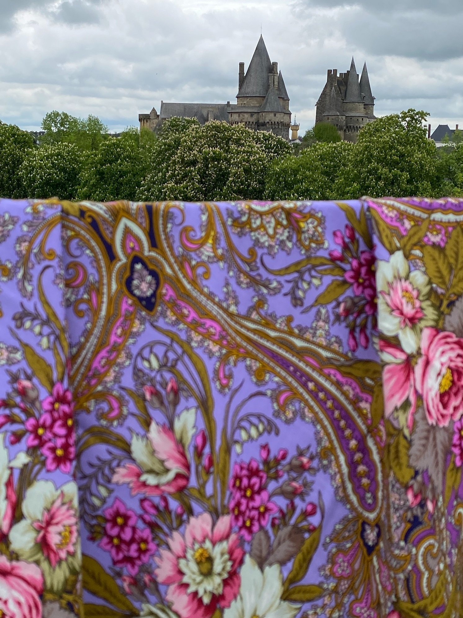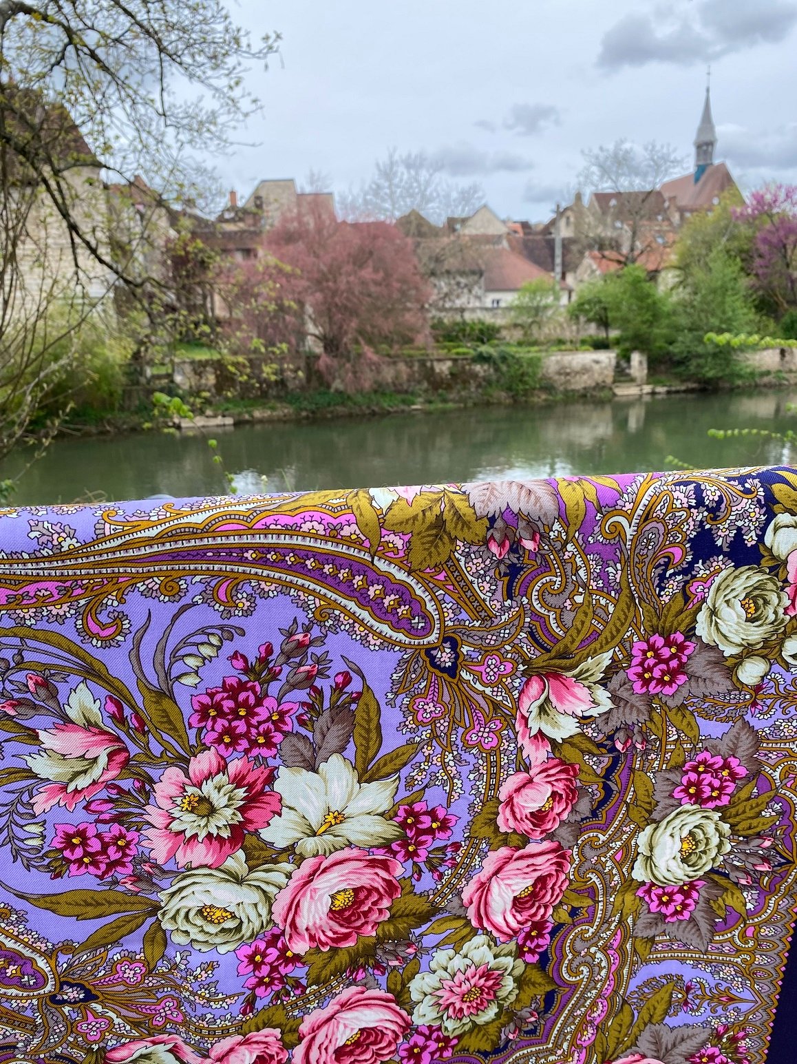 Разбирала недавно стопочку платков, к которым надо приложить руки, и нашла вот такой колорит Сонаты в подранках. Платок убит, пущен на рукоделие в школу, колорита в архиве нет, 22 с сиреневым у меня был, отпустила. Этот с персиковыми заливками, оттенки переданы верно.