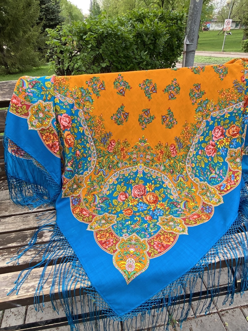 Платок шерстяной с шерстяной бахромой "Бирюсинка", вид 13, 125х125 см