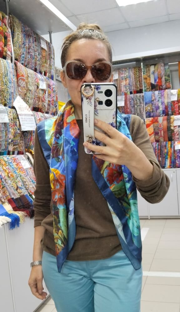 Оля, это что за платок такой?)купила номерной странный крепдешин с "девочками" и омелой.