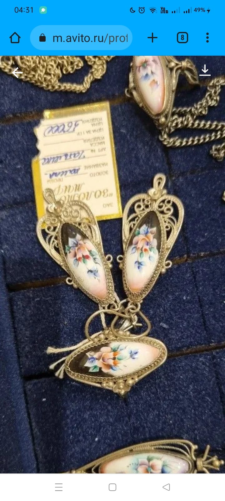 Комплект финифти с шелковыми платками. Финифть не знаю какая, но точно не ростовская.