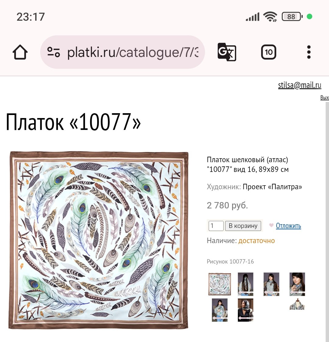 Добрый вечер,дамы,а на второй фотографии это что за платочек?Golden Fox писал(а): ↑30 июл 2025, 19:38Купила я платье. Хорошее платье,но с цветом проблема. Выбора не было, в этом фасоне - только темно-шоколадный, совсем не мой. От жадности к любимому виду кроя( на подкладке опять же)- купила, теперь мучаюсь, чем его оживить. Вариантов на самом деле было больше, но с участием шелка не ППМ, потому покажу три . Мне с большим отрывом понравился Белый шиповник, не понравилась на себе, хоть и идет к платью - Улыбка принцессы. Проблема в том, что строгие домашние судьи голубой напрочь забраковали..