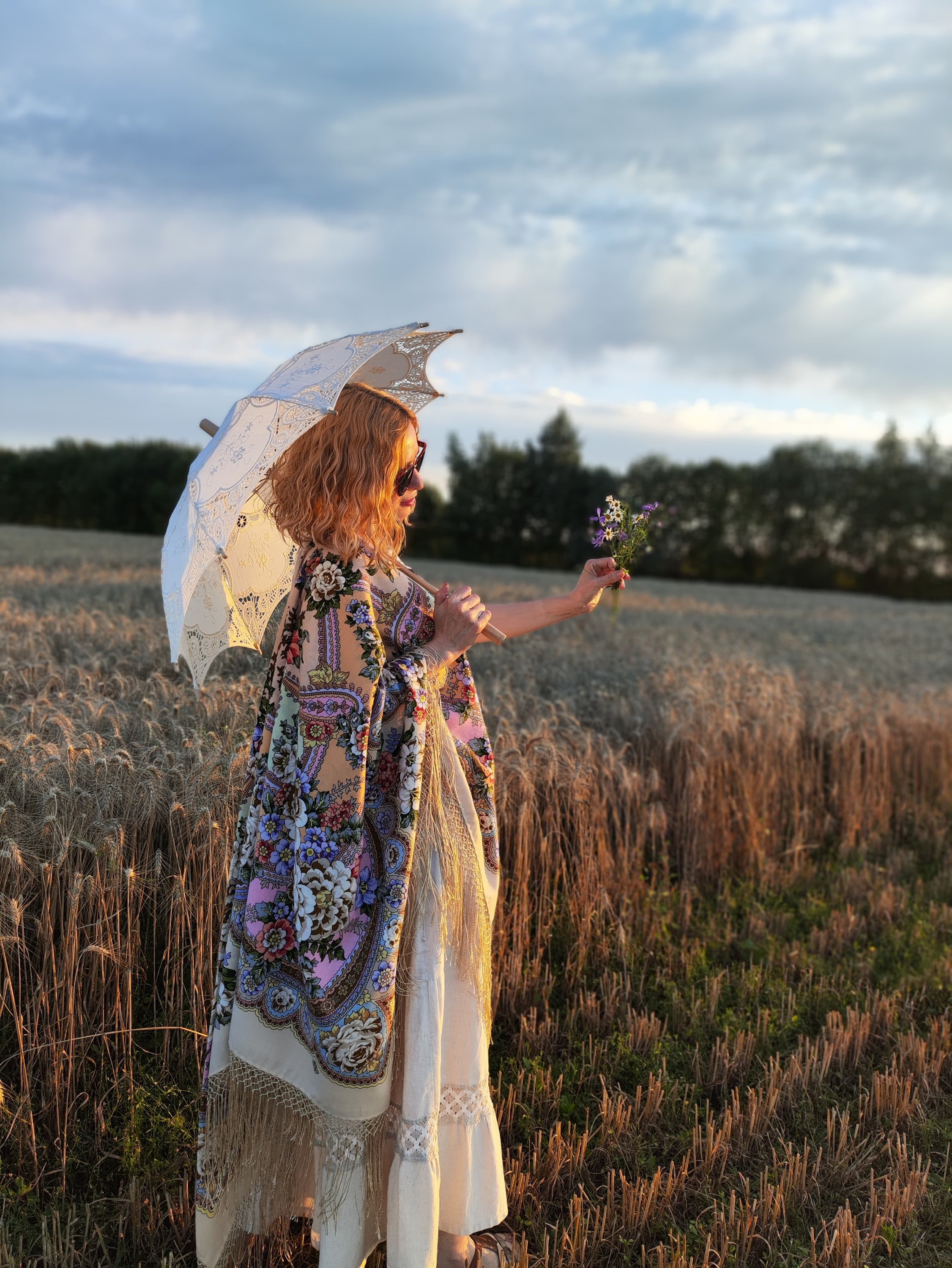 Снова рассматриваю и наслаждаюсь, какое же изумительное совпадение красивой женщины и шали, и природы, что просто дар речи пропадает))