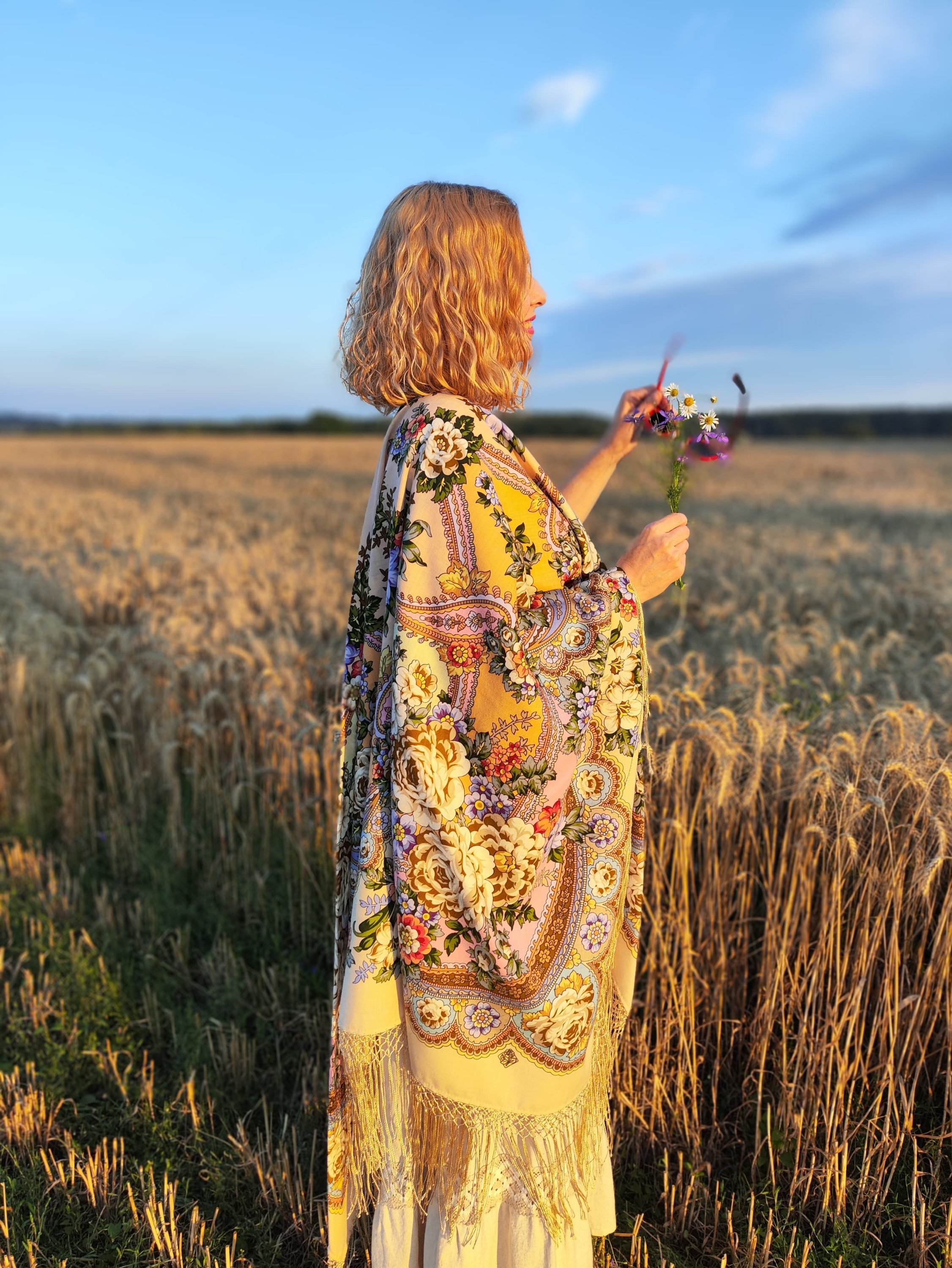 Снова рассматриваю и наслаждаюсь, какое же изумительное совпадение красивой женщины и шали, и природы, что просто дар речи пропадает))