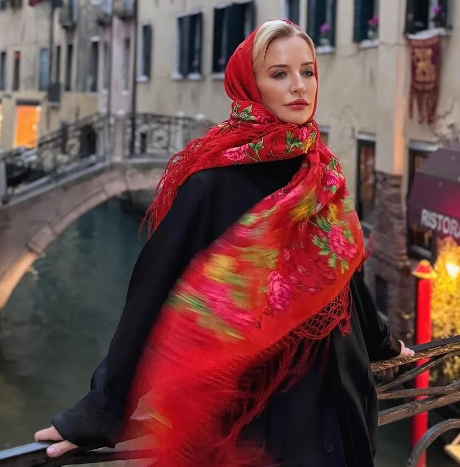 Часто встречаю девушек и женщин в наших платках, но в этот раз понравилось как подобрано под образ.