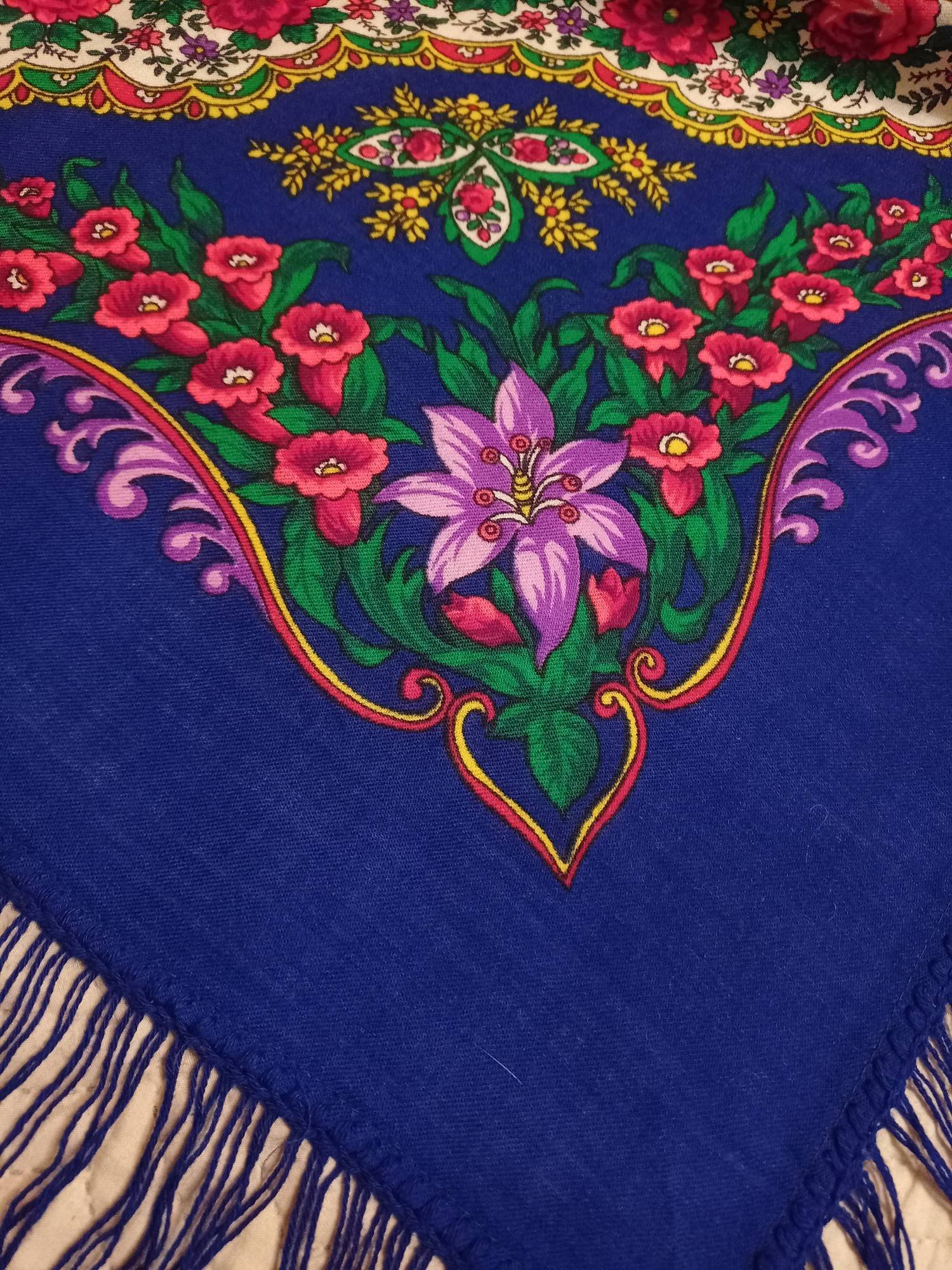Настенькин платочек, напечатанный на шерсти, на красном фоне попал ко мне. Не нашла такого колорита в каталоге, решила разместить