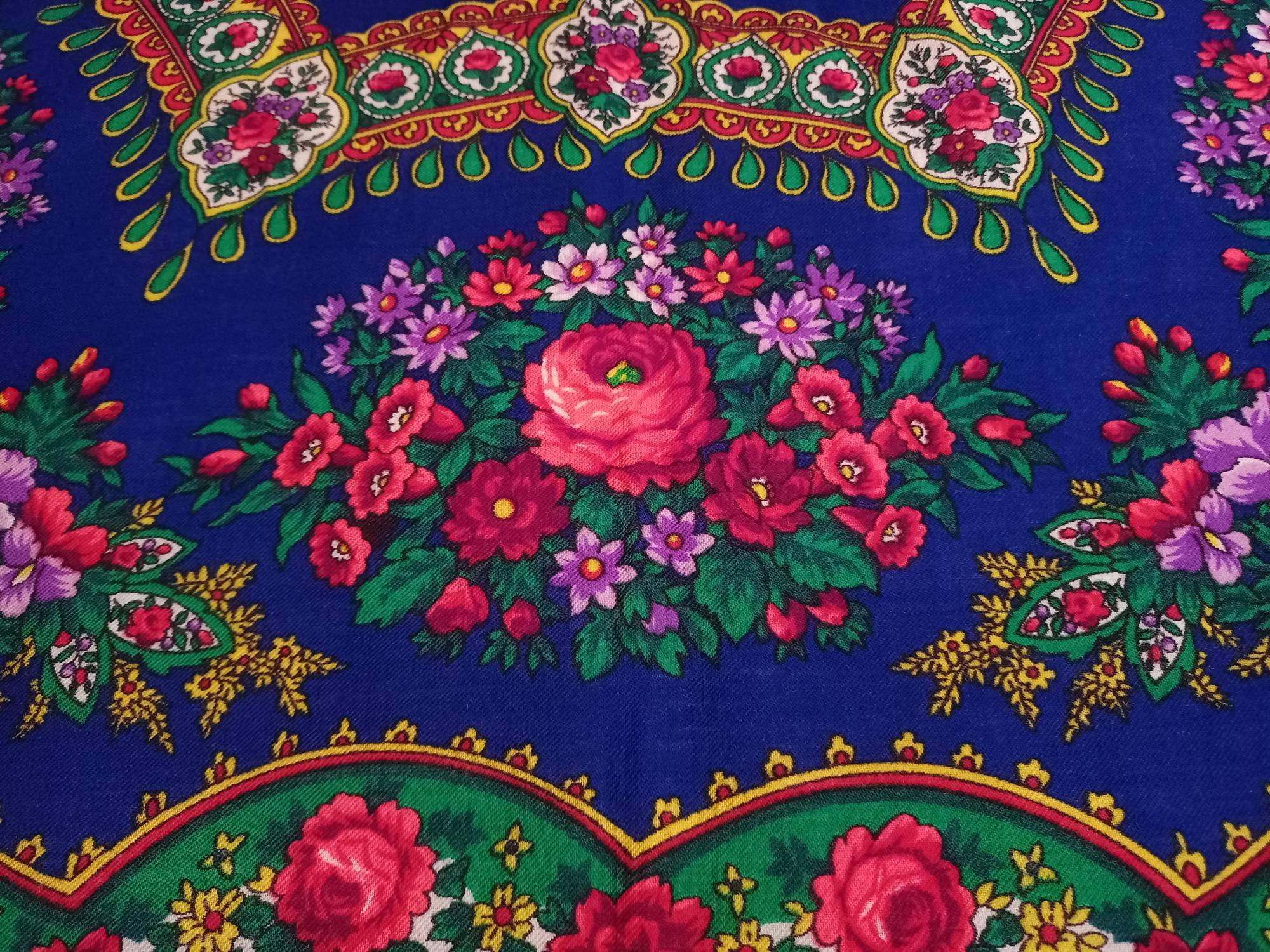 Настенькин платочек, напечатанный на шерсти, на красном фоне попал ко мне. Не нашла такого колорита в каталоге, решила разместить