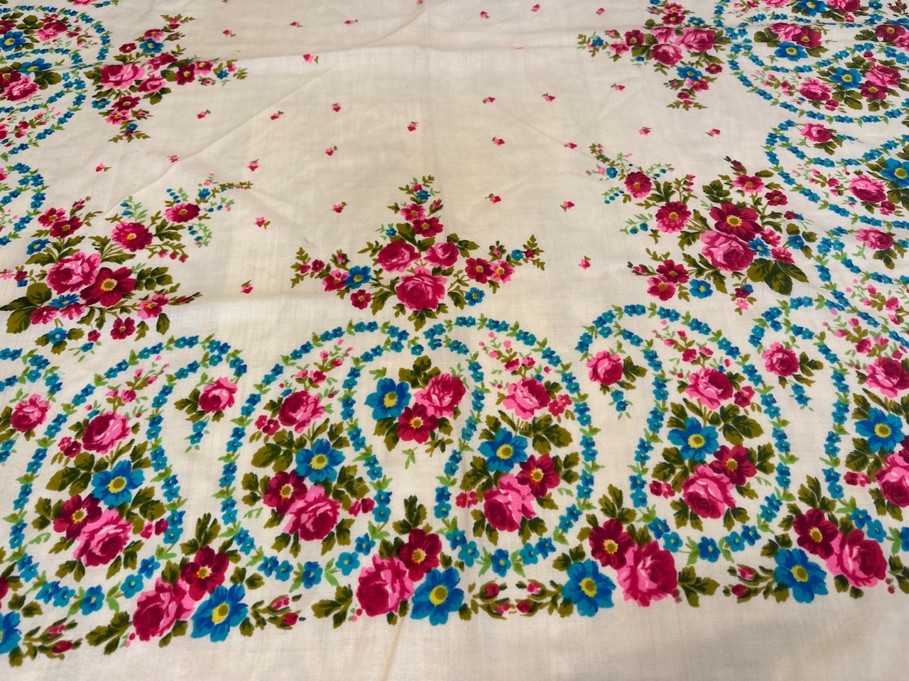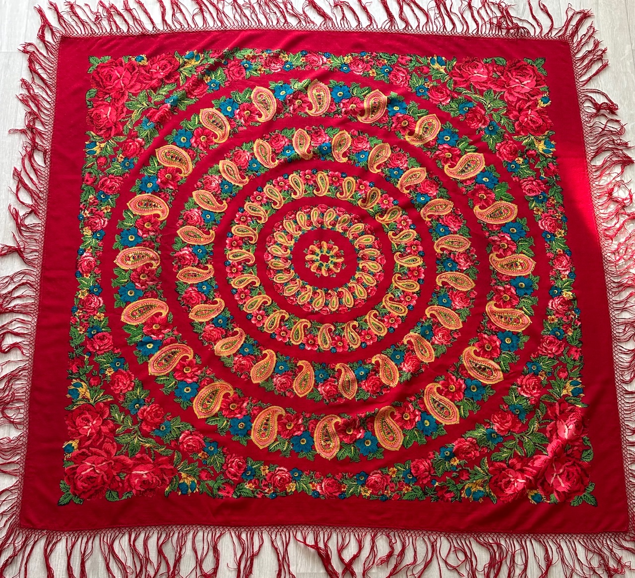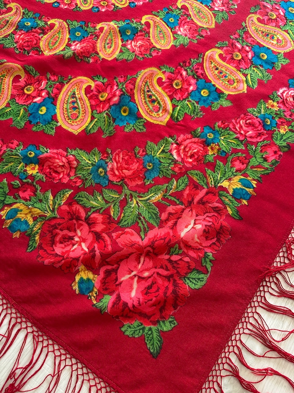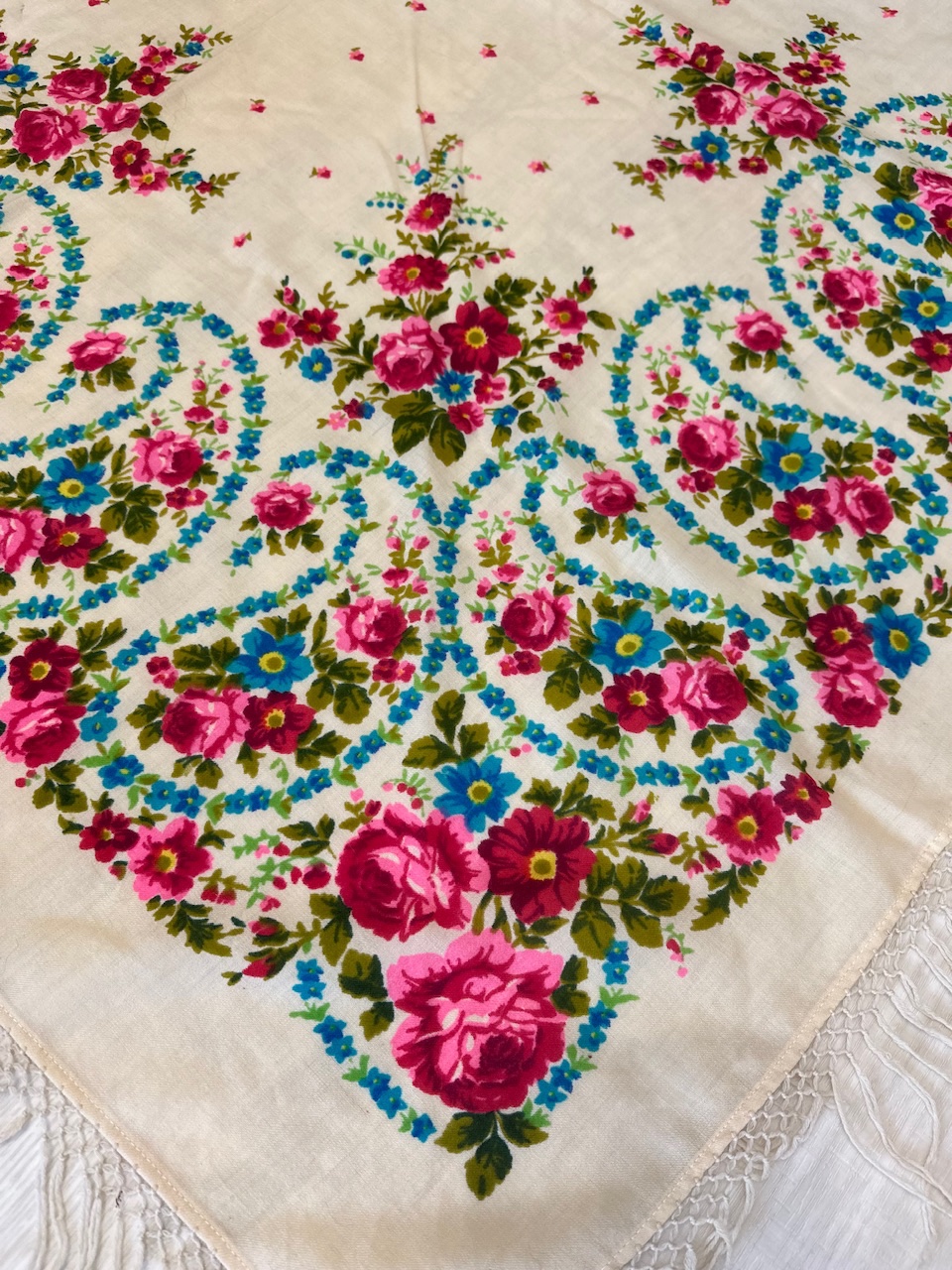 Появился в моей коллекции жаккардовый платок, в идеальнейшем состоянии, размер 108×108, с одной стороны одинарная подгибка, с другой без подгиба. Кто-нибудь может поделиться ссылкой на историю таких платков, каким годом датирован, может изестно?