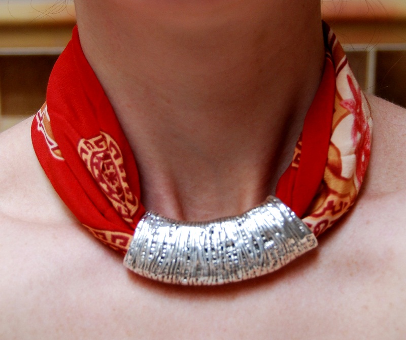 О-о-о!(голосом Эллочки-людоедочки) А мы ответим вот чем: купим зажим для платков, видела такой, в виде трубочки, неразъемный, ломала голову, на что такой нужен - и на бусы его, и на платок! Спасибо за идею!