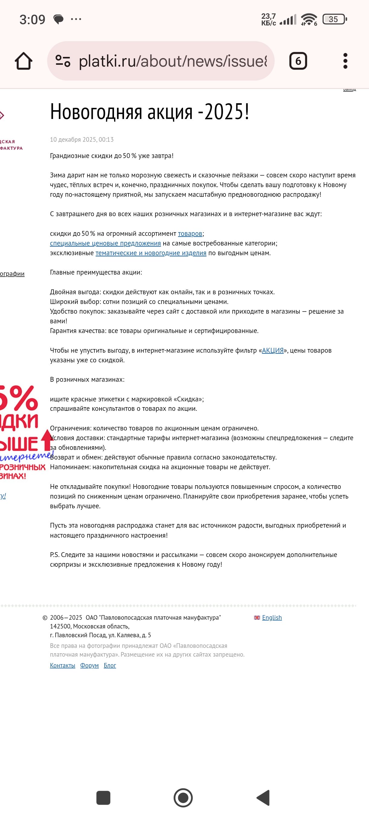 Оформила заказ на шёлковую шаль, счёт выставили с учётом личной скидки! В предыдущую акцию цена сайта была окончательной.