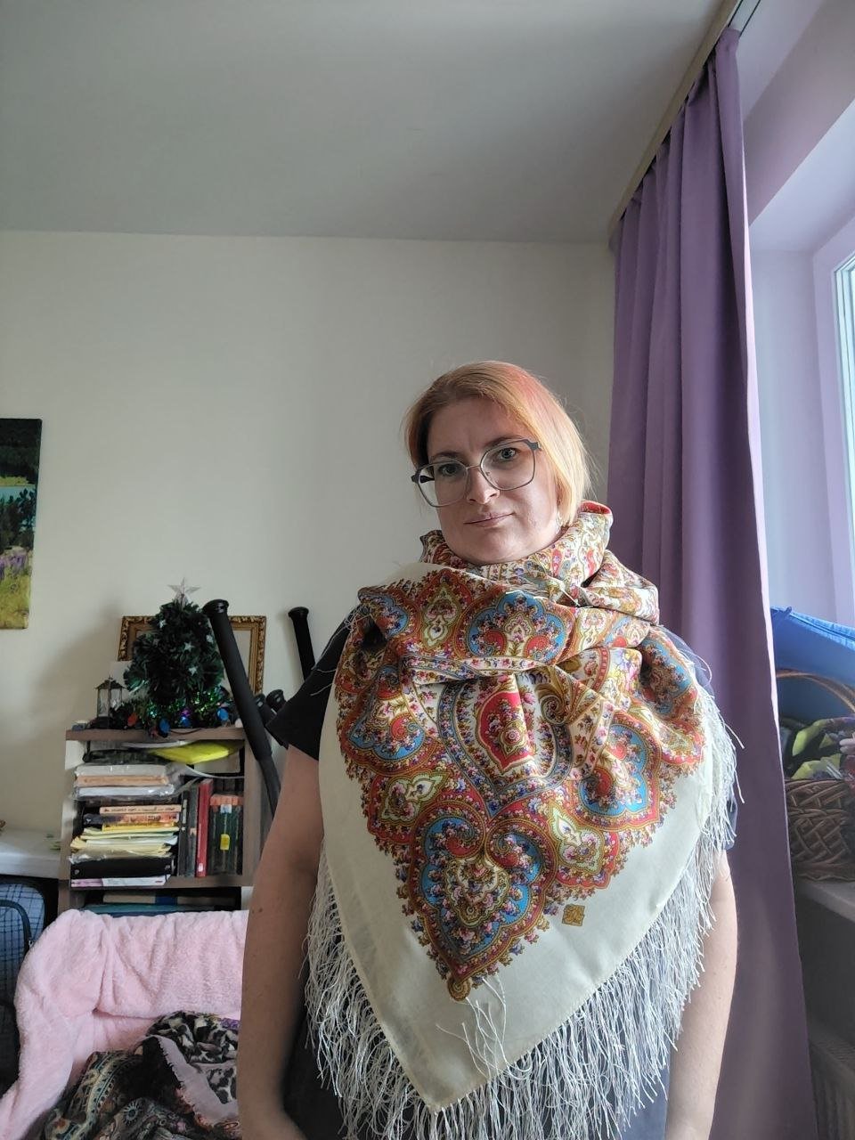 Amanda, вам очень идёт! Спасибо за показ, в архиве и правда мало этого платка.