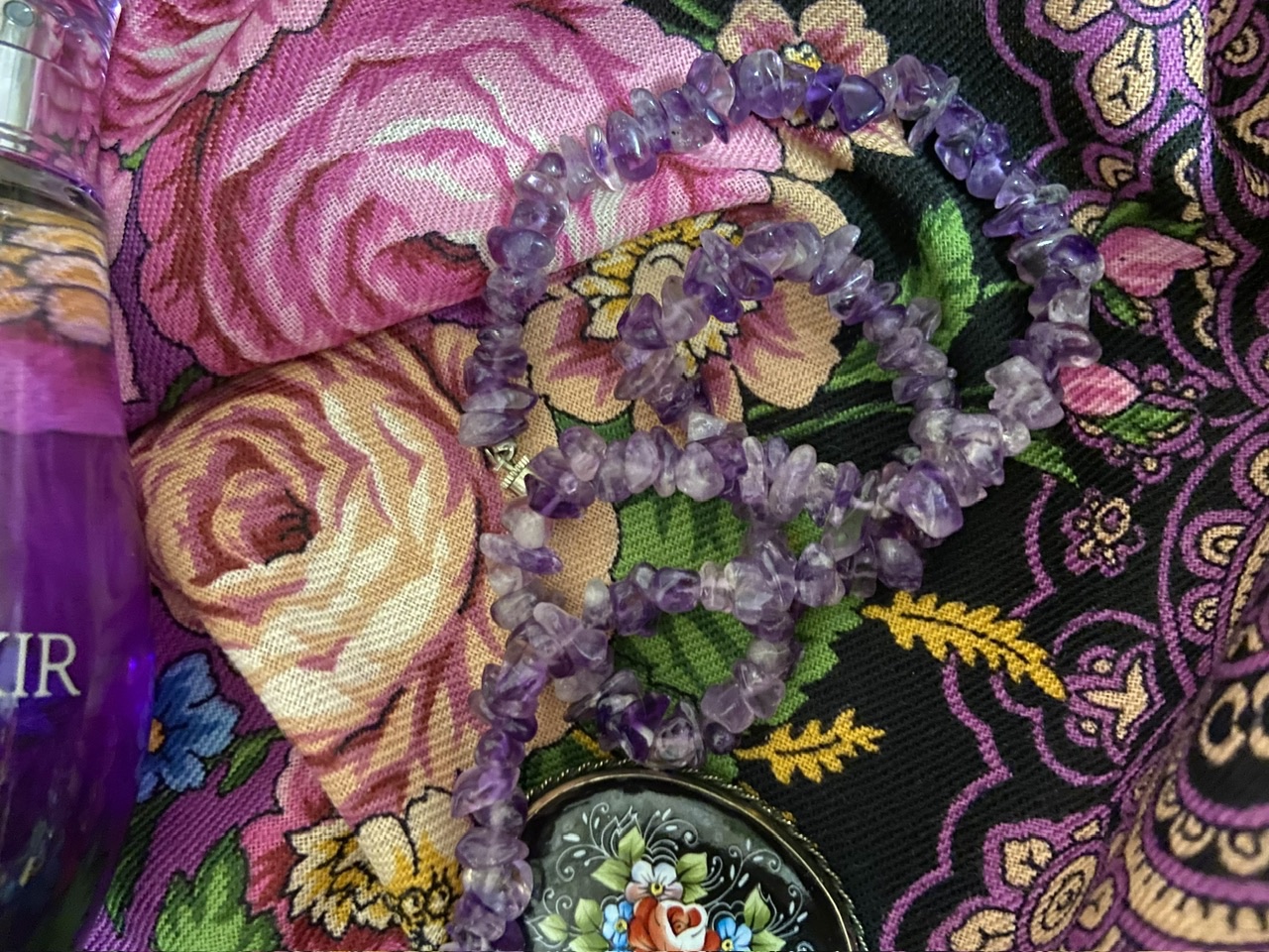 Флакон я сфотографировала на фоне вышивки на сумке, которую я вышивала 100 лет назад.