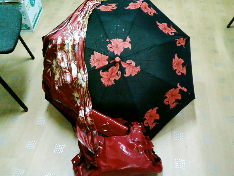 А я думала, что это меня на зонты пробило, :lol: целых два купила красный и сиренево-голубо-розовый (надо в зеркало посмотреть, вдруг я под ним - нежить какая), вместо одного сломавшегося оранжево-красно-черного. :) Вот, что платки наделали, это они расцвечивают красками нашу жизнь. У меня сумок разноцветных появилось много, перчаток, теперь вот зонты.