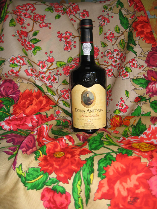 Девушки, я вдруг вспомнила, что у меня есть легендарная бутылка вина. Легендарная не в смысле широко известная, а памятная для меня лично. Это порто "Донна Антнония". Не знаю, какого года выпуска и какого года урожая. Появилась она у меня 19 лет назад: в тот год давний друг нашей семьи приехал домой в Россию после долгого отсутствия на Родине. В подарок нам преподнес это порто.