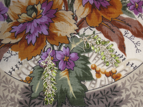 Чароит хорош был бы по цвету, но уже несколько тяжеловеснее, чем надо бы. Только не слишком ли массивно для воздушной Отрады это колье? Мне видится что-то подобное хризолитовым сережкам на предыдущих фотографиях.