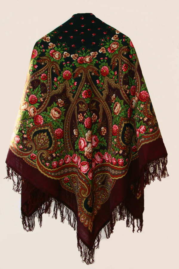 Всё-таки платок очень красивый! Он хорош даже на этом тянучем коричневом фоне.