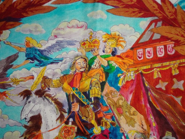 Детали платка Петр I, 90х90, шелк, ручная роспись. Продолжение ...