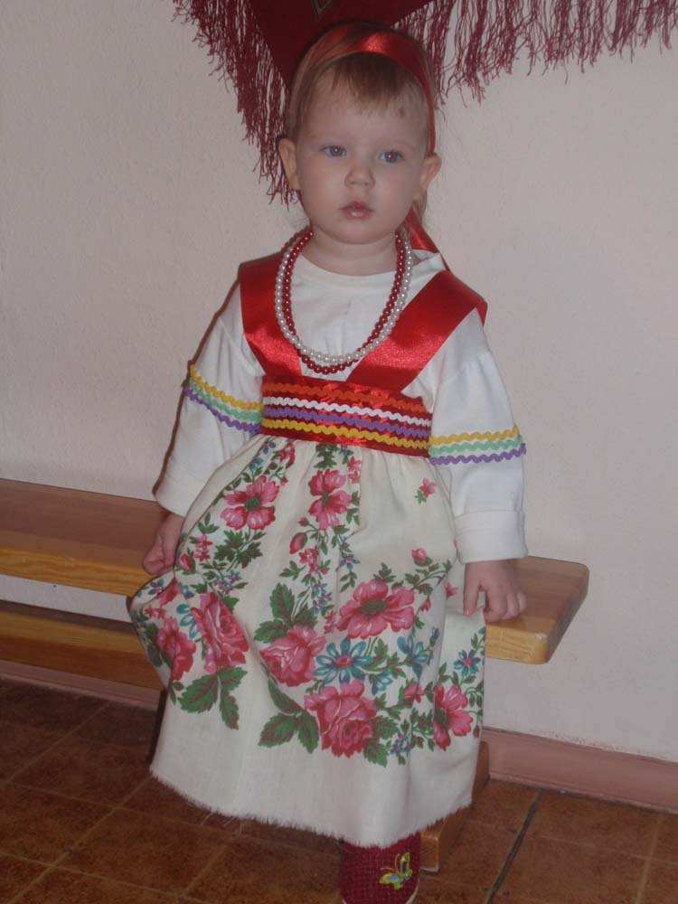 ,так интересно фотки легли. Дочуля Ваша под платочком Натальи Белокур НЕЗНАКОМКА 89х89 красного колорита, а синий - это ЮЖНАЯ НОЧЬ-13 Екатерины Регуновой. Ну а юбочка сшита из платка-малышки - без имени.