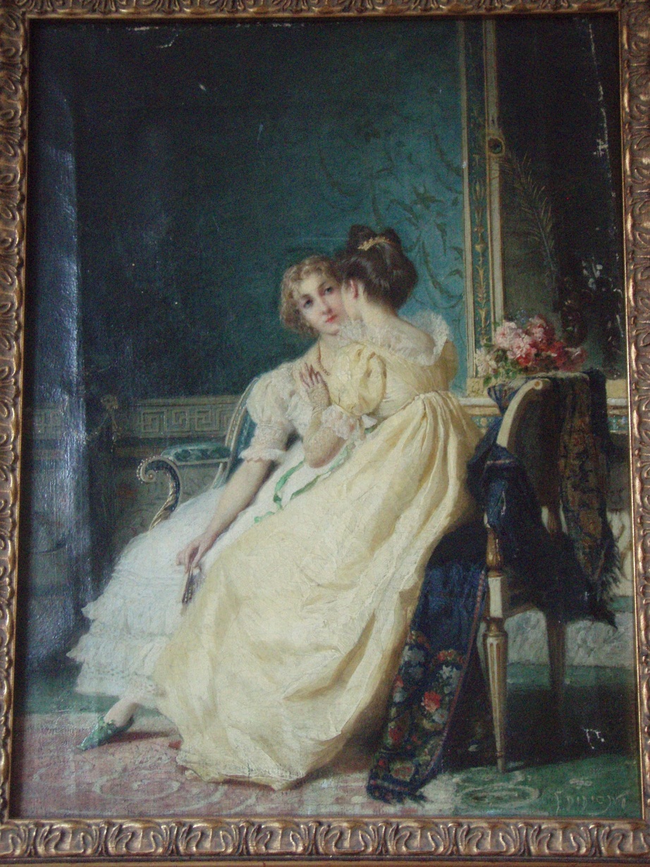А это итальянский художник Франческо Дидиони. "Две дамы в салоне" 1898 год (можно увеличить фото).До сих пор не могу определить - что на кресле - похоже на палантин, если смотреть на свисающий до пола край. Если смотреть на спинку стула...то на шаль похоже.... Скорее всего - это две разных вещи - палантин одной дамы, и шаль - другой.