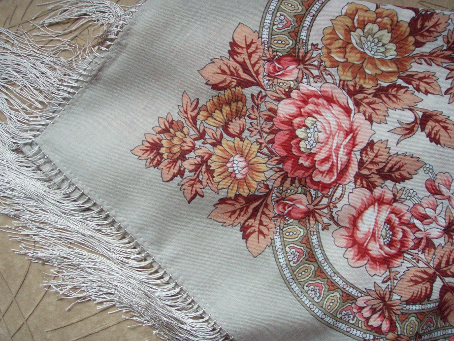 Теперь рядом серая и беж. На самом деле - такой нежный, чистый ,светлый серый цвет я не видела ни на одном из платков - "Таинство цветов" это серый+беж, "Рококо" это серый тёмный с лёгким-легким добавлением (кое-где) бирюзы с белилами, "Цветущий сад" - темные оттенки серого, где-то даже свинцовость есть, "Инфанта" - тоже "другой серый"...