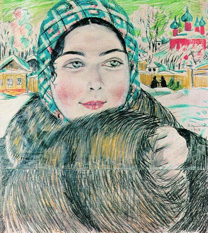 Кустодиев Б.М. 1919 Молодая купчиха в клетчатом платочке.