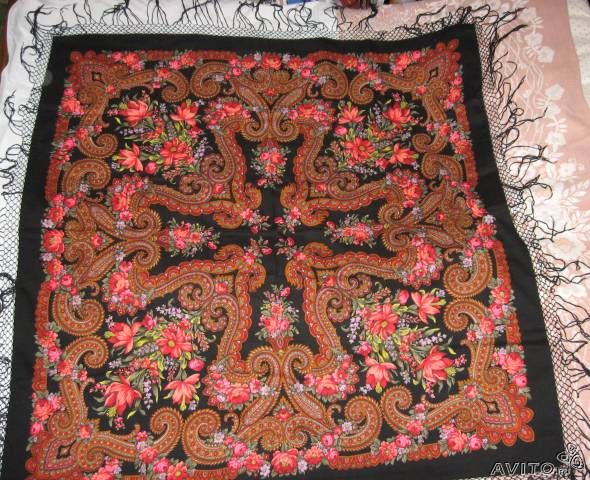 Вот такой платочек.148, шерстяная бахрома.Возможно, кто-то опознает ?