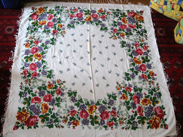 Винтажный платок, 93 х 97 см, кисти 11 см. Фон сливочн..jpeg
