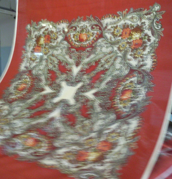 Будет называться "Цветочная сказка". Раньше выпускался без названия. Фото с видеокамеры, качество плохое, но Мила говорит, что очень красивый. Классические павловопосадские розы во всей красе. 146х146.