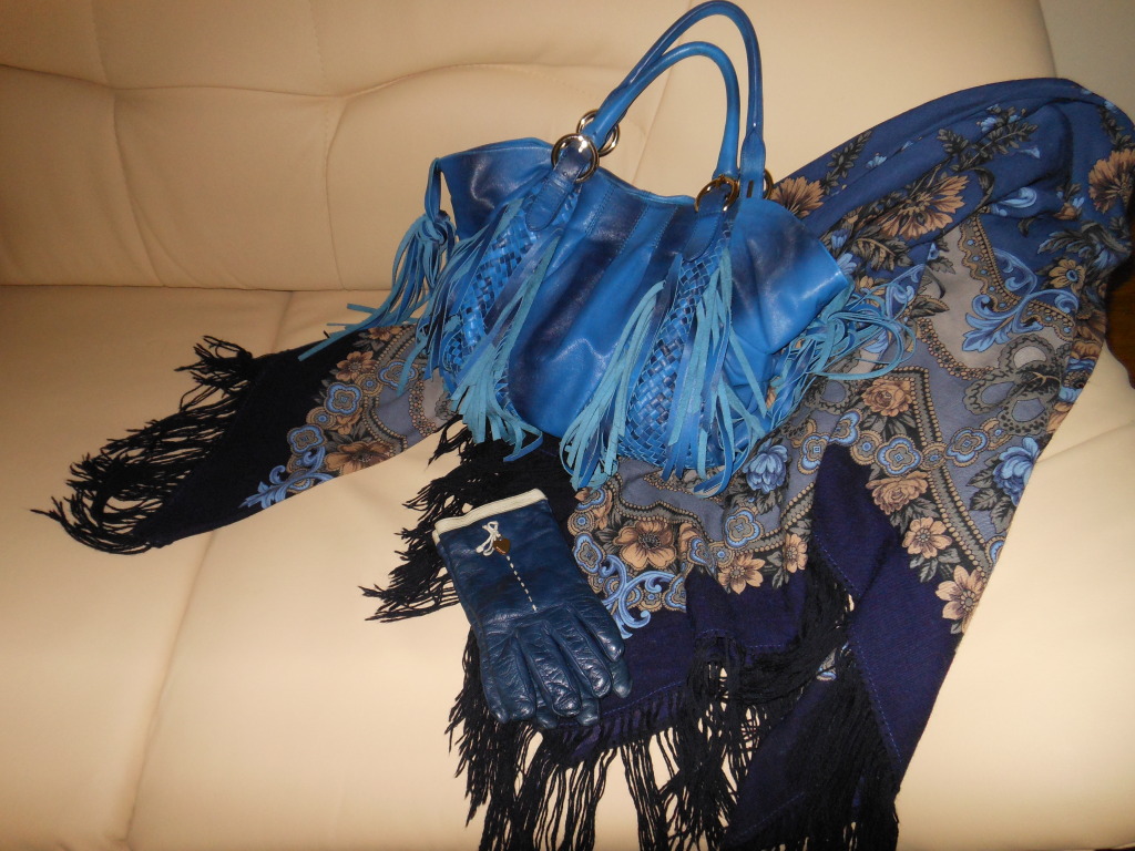 Из моей обширной сумочной коллекции, эти тона синего цвета практически под все мои синепольные платки подходят, в реале темнее