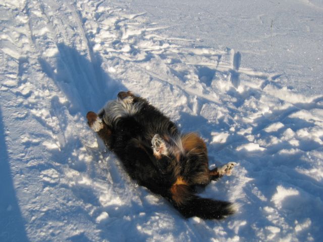 Ох! :lol: Точно! Хоть и морозик, эдак -10-15, а Ольсе потребовалось много-много "выбегания, почесания, лежания с валянием и купанием"в снегу. ?*(): Для нее эта погода самая что ни на есть та самая... :lol: :lol: :lol: