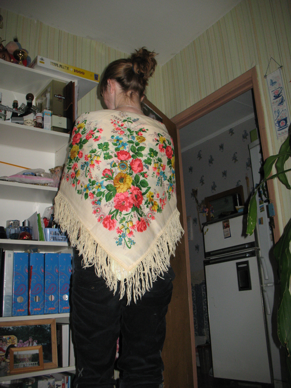 У меня есть "Русская красавица" с изумрудными розами. Постараюсь сфотографировать поскорее. Платок не новый, был отдан мне подругой, знающей, что я платки и шали люблю и активно ношу. Ко мне платок попал с уже слипшейся и несимпатично выглядящей шерстяной бахромой. Вот как раз подумываю, не реанимировать ли бахрому...