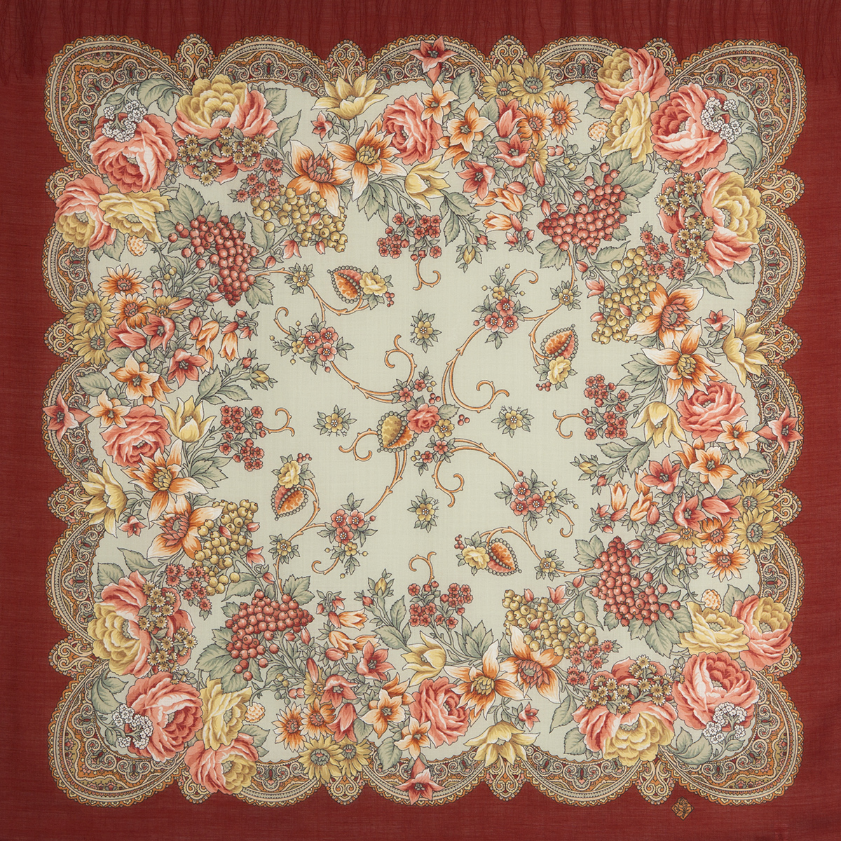 Шерстяной платок 146х146, напечатанный на ткани с просновками. Выпуск 2013 г.