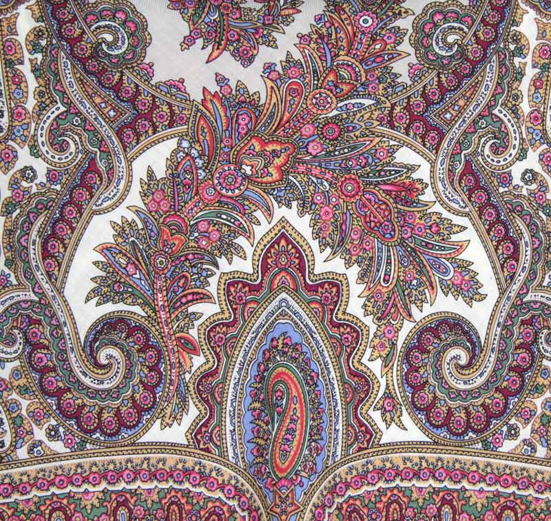 Не могли бы вы выложить хорошие фотки деталей при правильном освещении. На форуме этот платок очень мало представлен. И, как нарочно, нет ни одной хорошей, подробной картинки. Где-то мне видится зелёный цвет, где-то коричневый, где-то жёлтый. Где-то он выглядит приглушенным, достаточно тёмным, а где-то - аж малиновым. А как же на самом деле?