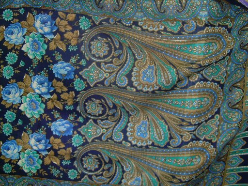 Не могли бы вы выложить хорошие фотки деталей при правильном освещении. На форуме этот платок очень мало представлен. И, как нарочно, нет ни одной хорошей, подробной картинки. Где-то мне видится зелёный цвет, где-то коричневый, где-то жёлтый. Где-то он выглядит приглушенным, достаточно тёмным, а где-то - аж малиновым. А как же на самом деле?