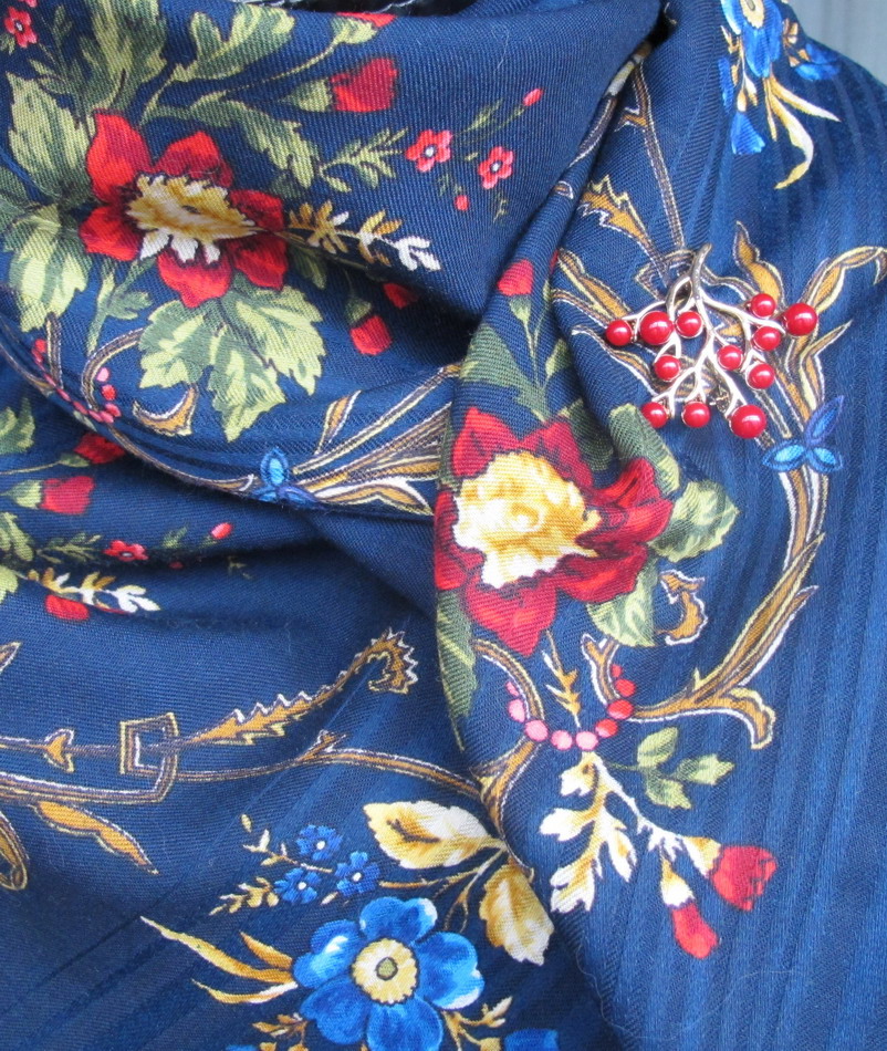 juana, очень милые брошки Вы где-то находите. "Яблоки" здорово вписались в синий платок. Жемчуга на шелке - тоже здорово, ну а голубенькая россыпь - хоть куда, везде при синих цветочках будет "в масть".