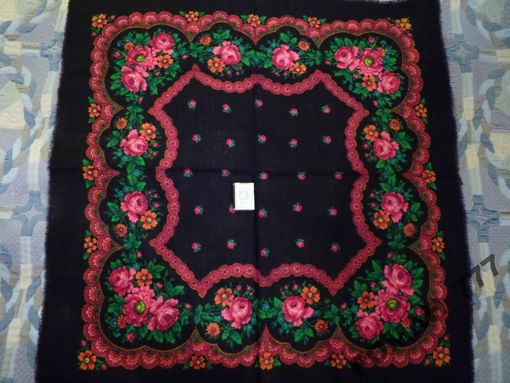 Уважаемые платочкознайцы! Помогите пожалуйста определить что это за чудесный платочек. Размер, сами видите, близок к современному 89 на 89, бахрома шерстяная. Не знаю насколько изделие в годах, хозяйка говорит, что прилично. Избегаю чернопольных платков, но этот прямо отобрать у владелицы захотелось!