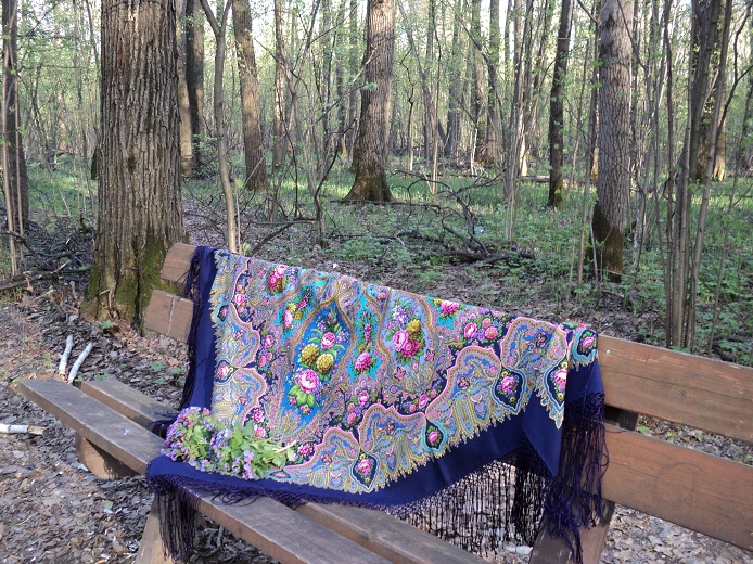 Платки шёлковые на солнце совершенно иначе себя ведут. Вот синий платок Восточные сладости так заиграл в зелёной траве! Не ожидала от него. 8-)