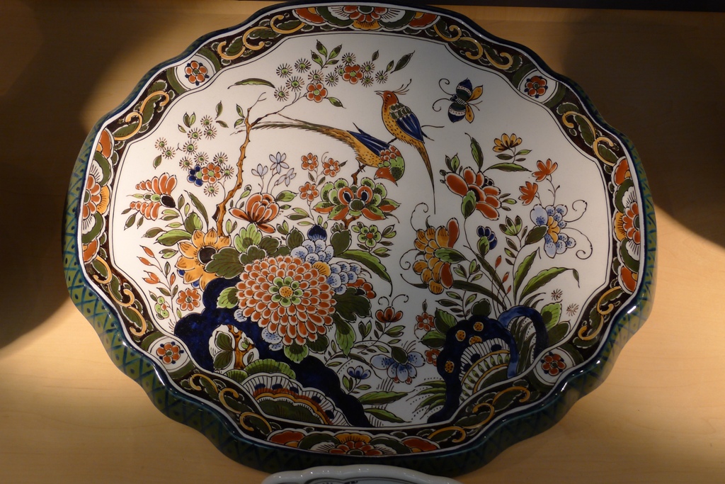 Сюжеты на полихроме – цветы, букеты, фрукты, птицы, бабочки-букашки - райский сад, да и только. Многоцветных пейзажей и портретов не заметила, да и не могу представить голландские пейзажи иначе как в синем исполнении – глядя по многу раз на дню на постоянно меняющееся, необыкновенно живописное небо над каналами, шпилями и черепичными крышами, понимаешь, что оно именно такое, как на дельфтском синем фарфоре.