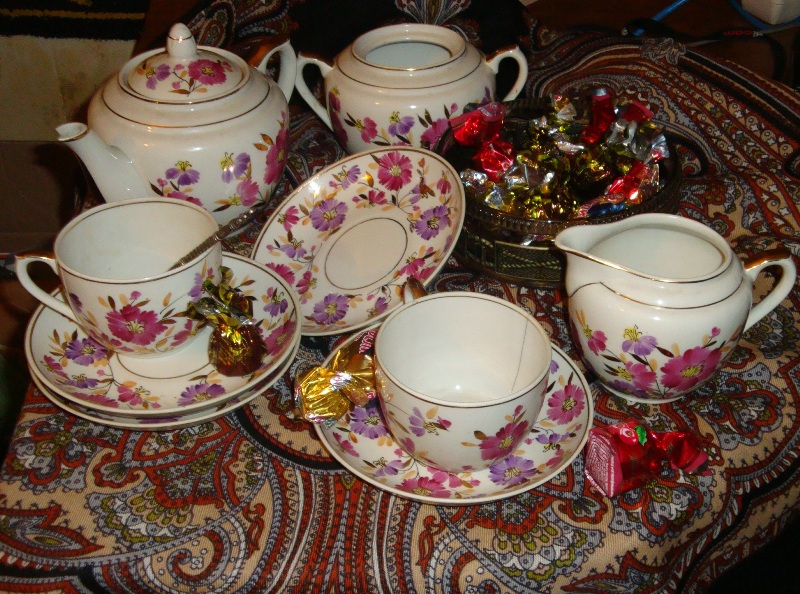 Тема совсем непопулярна стала. Добавлю фото своего старого, еще бабушкиного, сервизика.