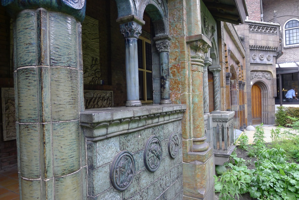Наверное, поэтому в Royal Delft было создано дочернее производство – фабрика «Вестравен», где изделия не расписываются вручную, а украшаются декором, нанесенным с помощью трансферной техники – декор сначала вымачивается в воде, затем наносится на уже покрытый глазурью и обожженный 2 раза продукт. Этот продукт обжигается еще один раз, и декор сплавляется с глазурным слоем. Цена этих изделий на порядки ниже, чем фарфора «Porceleyne Fles». Маркируются они тоже по-другому и выглядят иначе. В фирменном магазине продукция «Вестравен» занимает несколько витрин у входа (на последнем фото).
