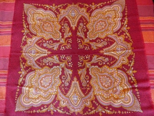 Я думаю, такая старая шаль могла быть напечатана только при помощи ручной набойки. Ей же лет 50, не менее?