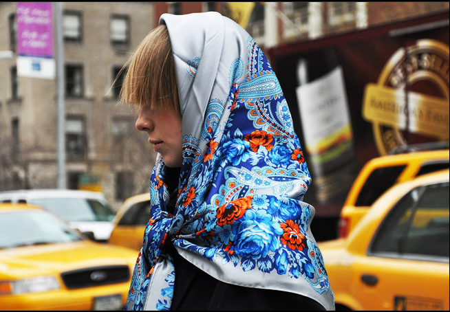Я где-то давала ссылку на фото девушки в красивом голубом в платке(помнится тогда решили, что он чем-то на "Царевну" похож). Теперь я случайно узнала, что это была дизайнер Вика Газинская (стыдно, но я не очень хорошо ориентируюсь в молодых дизайнерах как российских так и украинских).