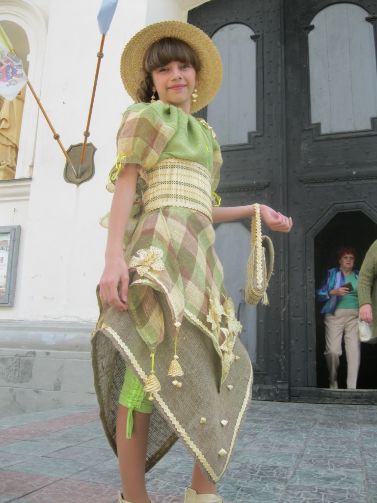 Сегодня в Несвиже Минской области был конкурс исконно белорусского народного промысла - соломоплетения, девочки в нарядах из льна и соломы позировали на ступеньках костёла.