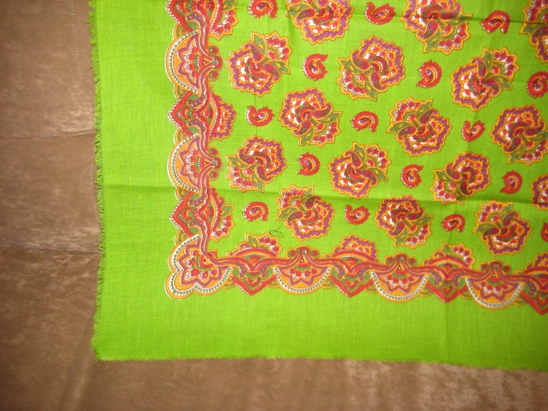 Про зеленый наверняка не знаю, павловопосадский он или нет. Хлопчато-бумажные платки печатали не только в Павловском Посаде.