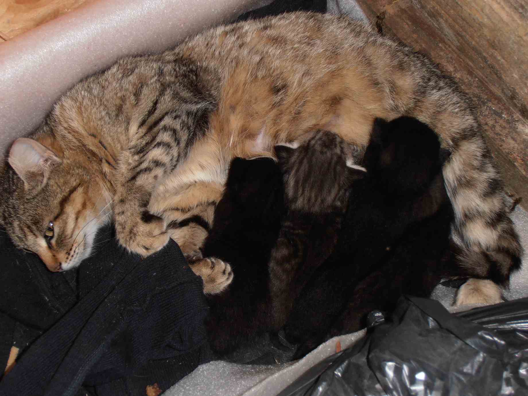 А у нас вот...смешнюки)))). Соседская кошка решила, что мы ей больше подходим в качестве хозяевов)))) и разродилась в сарае.