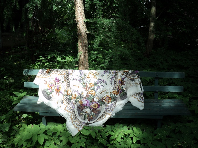 В Калашных плёсских рядах я увидела прилавок с павловопосадскими платками - кинула взгляд... Продавец тут же начал мне предлагать, красиво представляя каждый, платки. Подбирал по цвету моих глаз... Потом попросил меня примерить некоторые платки, которые, на его взгляд, мне подходят. А ведь и правда, мне понравилось. Продавец - симпатичный интеллигентный мужчина, с которым было приятно общаться. Мне понравился его взгляд на некоторые орнаменты.
