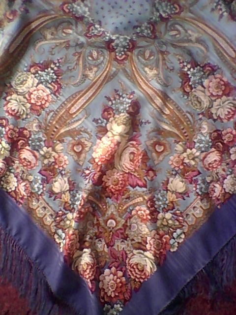 Доброго вечера всем! Сегодня мой муж решил сделать нам с дочкой подарки: купить по шальке. Только с одним условием: выбирать он будет сам. Все шали красного, коричневого и зеленых оттенков отверг напрочь. Потом все же спросил , а может ты что - нибудь хочешь? Ну, кроме как "все" я не нашлась, что ответить. И вот из трех шалей синеголубого колорита "Июньское утро", " Майя" и "Княжеский" он выбрал ослепительный Княжеский. Какая же это шаль! я не очень - то обращала на нее внимание, но познакомившись поближе, поняла, что стала обладательницей очередного шедевра, произведения искусства. Потом прочитала о ней много отзывов. Сколько таких же счастливых обладательниц!