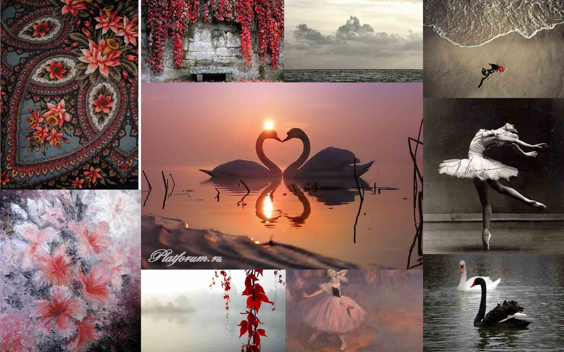 Очень красивый рисунок у платка, замечательный колорит (вчера на сайте любовалась на похожий колорит КОРОЛЕВСКОГО БАЛА), а Ваш коллаж - волшебная лебединая песня. Очень-очень нравится!!!